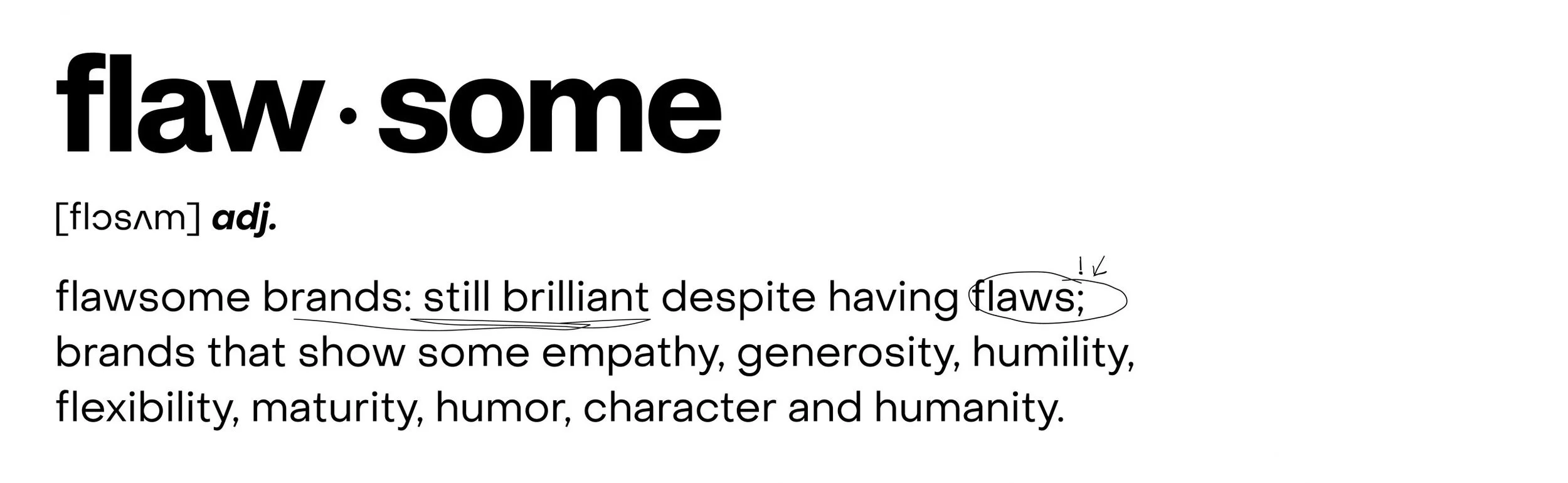 Per questo abbiamo deciso di incentrare il nostro consueto dono natalizio quest’anno su un concetto spesso utilizzato dai marketers anglosassoni e ancora mai nel contesto italiano: quello di “flawsome”, una crasi – un po’ fancy, ce ne rendiamo conto – tra “flaw”, difetto, e “awesome”, eccezionale.
