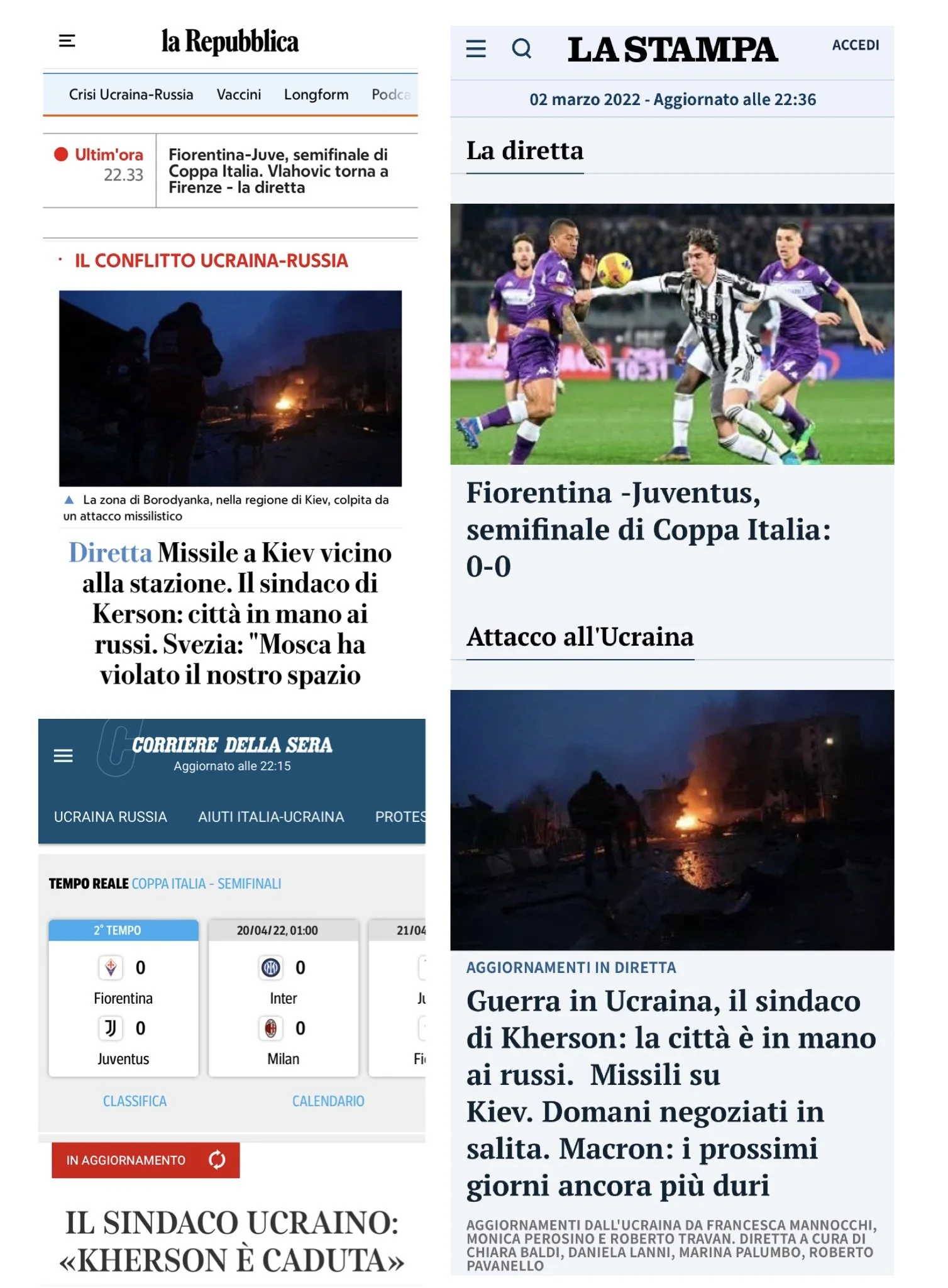 ma miseria di un cane, è mai possibile che si debba raggiungere questo grado di volgarità, per scavalcare il primo conflitto bellico interno ai confini europei dal quarantacinque, con il risultato live di fiorentina-juventus (lastampa addirittura l’ha fatta diventare prima notizia, neanche una box di occhiello - però oh, con tutto quello che hanno speso per vlahovic, il giornale è il loro)?